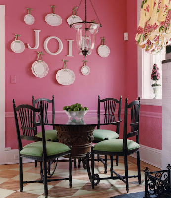 A pink dining room