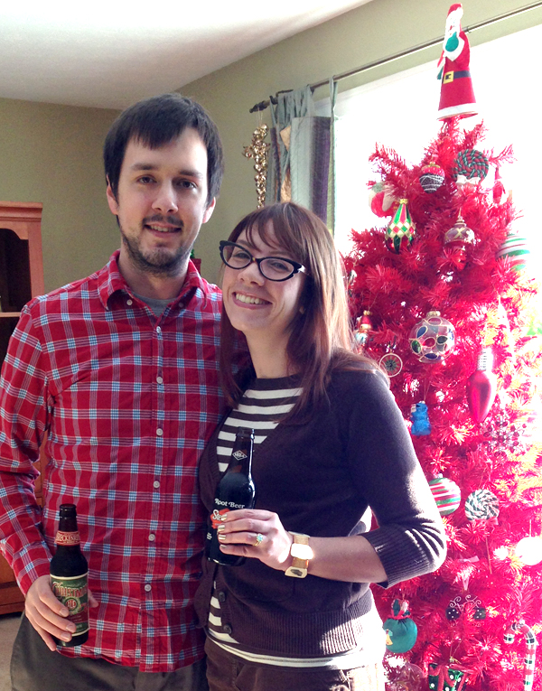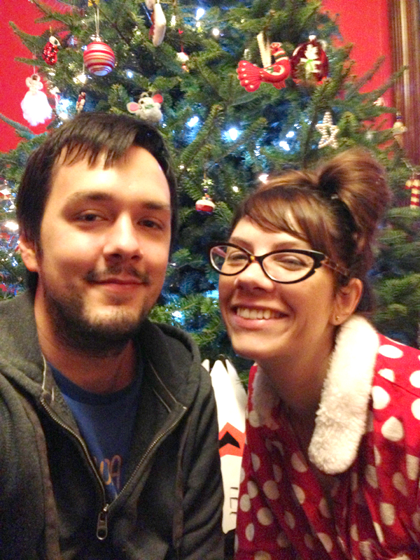 Posing with Andy’s mom’s fabulous red tree.