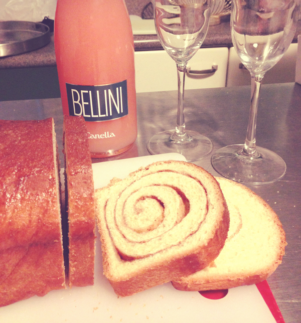 After exchanging gifts, Andy and I had cinnamon bread and bellinis for breakfast.