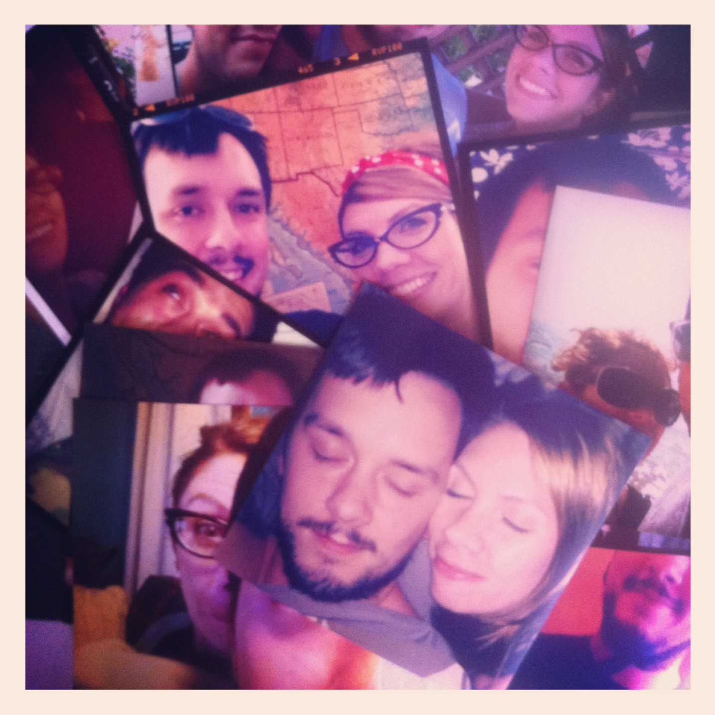 Every day since our wedding day we’ve taken a second out of whatever we’re doing to snap a quick photo of the two of us with our camera phones. Some of the pictures are really funny, some are downright bad, but it’s such a great way to document our lives. Our plan is to take a photo everyday for a full year and then put all of the photos together in a big scrapbook. We had the first month’s photos printed by PostalPix last week, and they’re so fun! I love this project a lot!