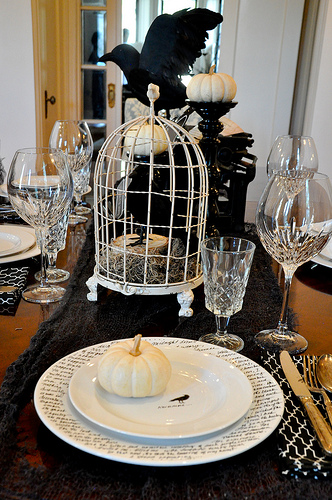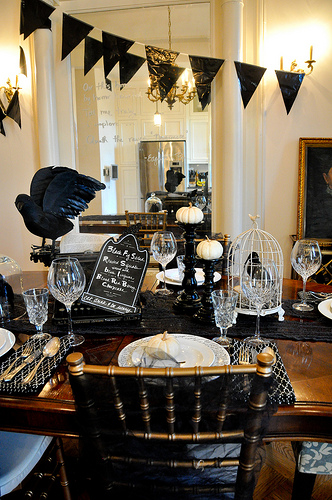 This Quoth the Raven Dinner Party by Mrs. Limestone is creepily perfect. Ravens are one of my favorite Halloween decorations. She even painted those plates herself, which seems like a surprisingly easy project that I want to try myself sometime. Photos by Brooklyn Limestone.